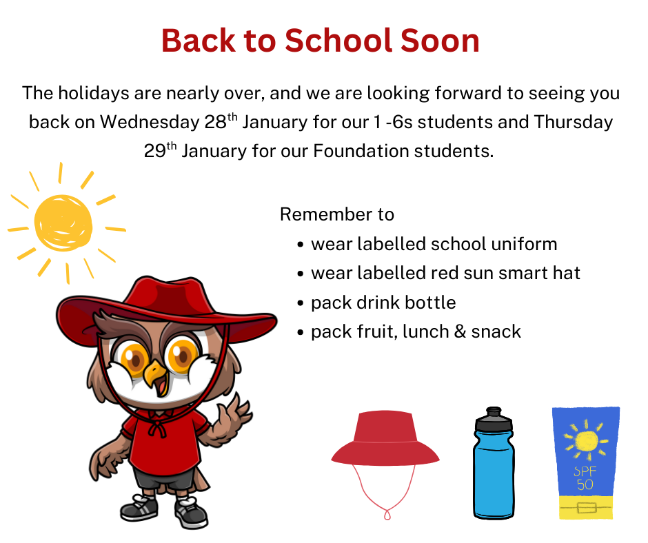 To help you child/ren be ready for their first day of school in 2026 please make sure you have: